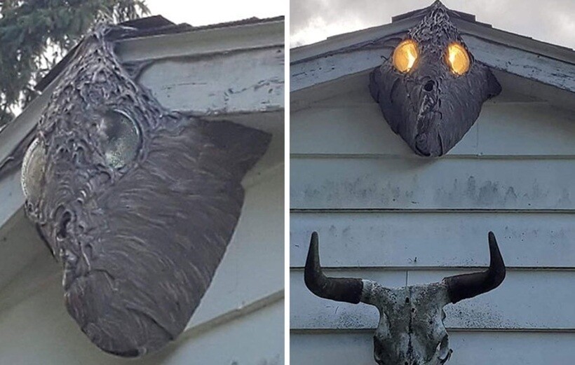 Осы свили гнездо вокруг прожекторов под крышей гаража