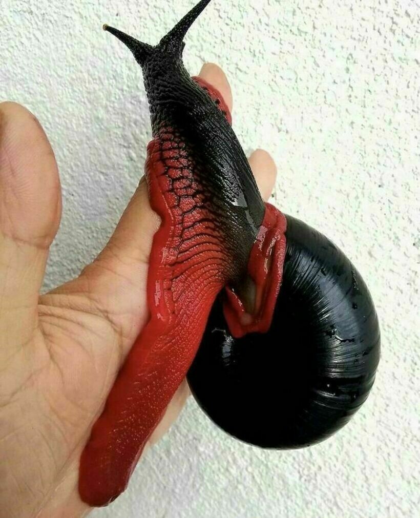 Яркий окрас этой улитки может напугать, но на самом деле она безобидная