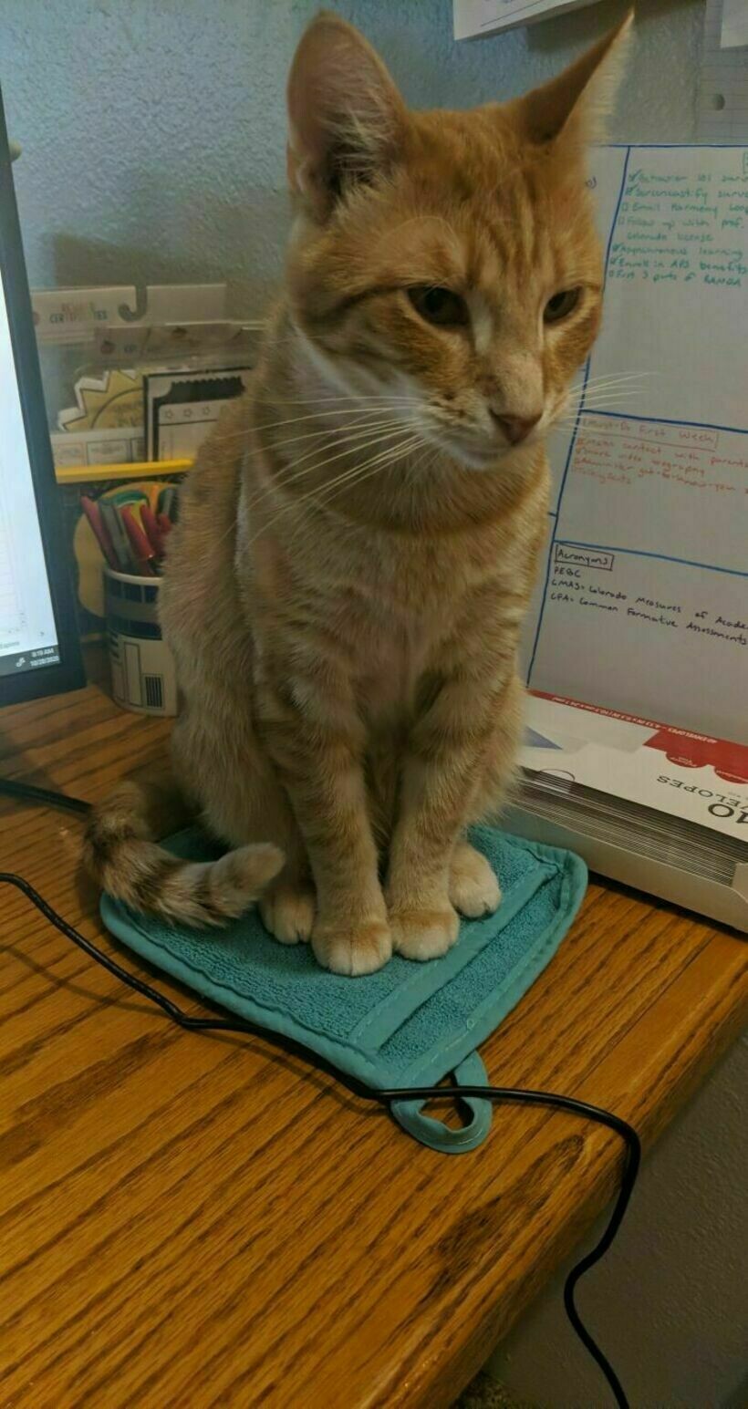 Чтобы кот не разлегся на весь стол и не мешал тем самым делать уроки, надо просто положить ему прихватку
