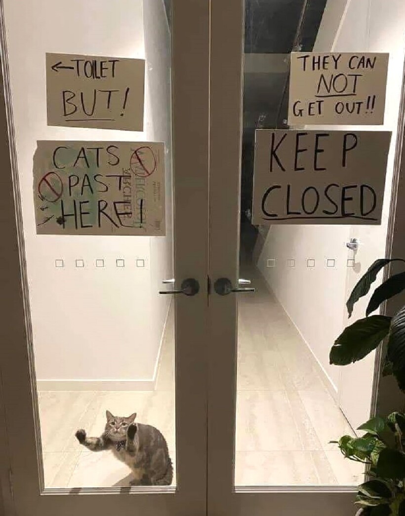 Многочисленные надписи на двери в туалет говорят: «коты идут мимо», «не пускайте котов», «им тут не место»... Что же произошло в туалете?