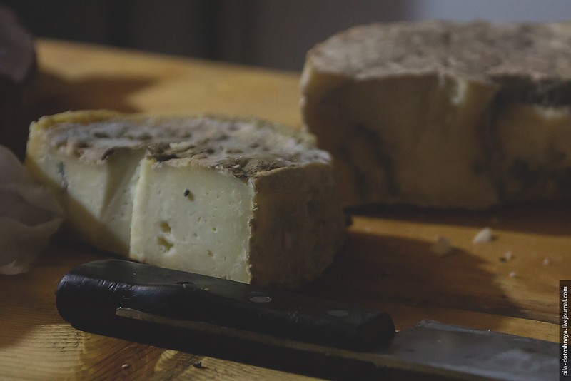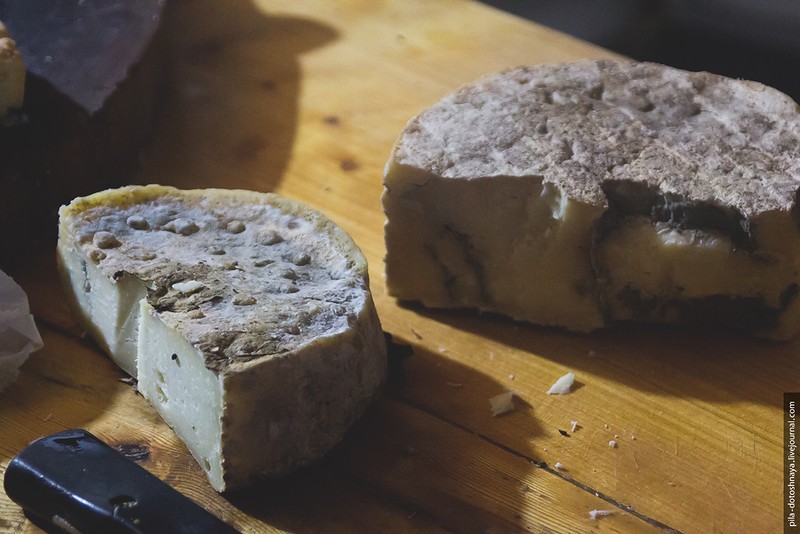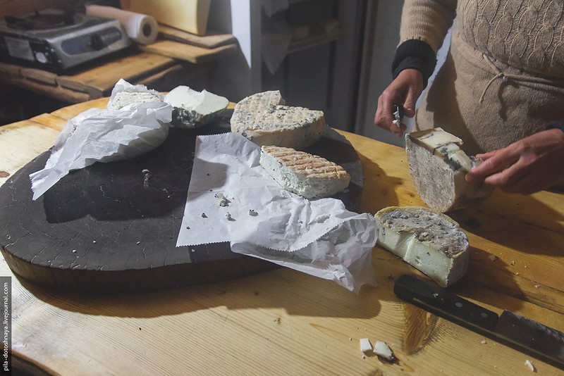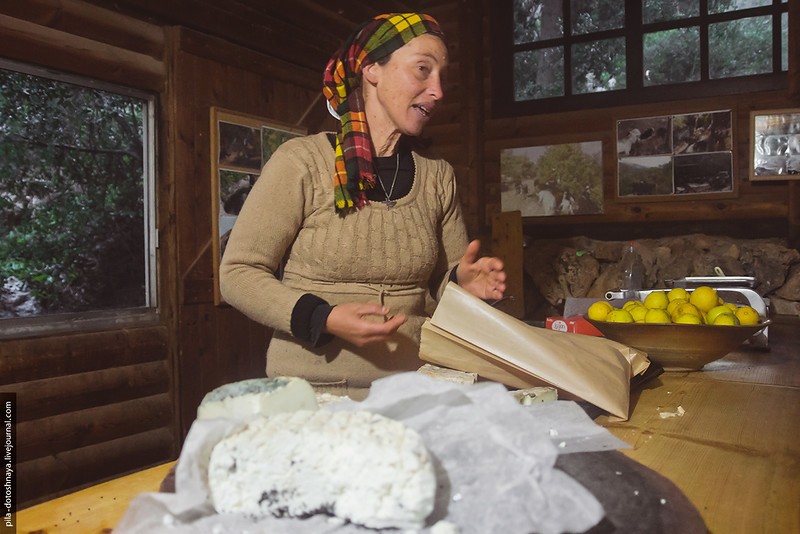 Хозяйка показывает, какие сыры есть.