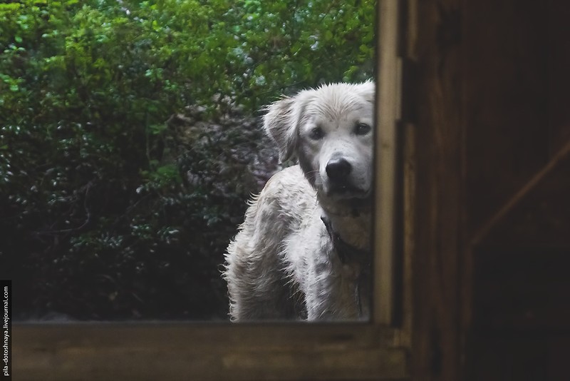 И собачка явно хочет внутрь к нашим лакомствам.