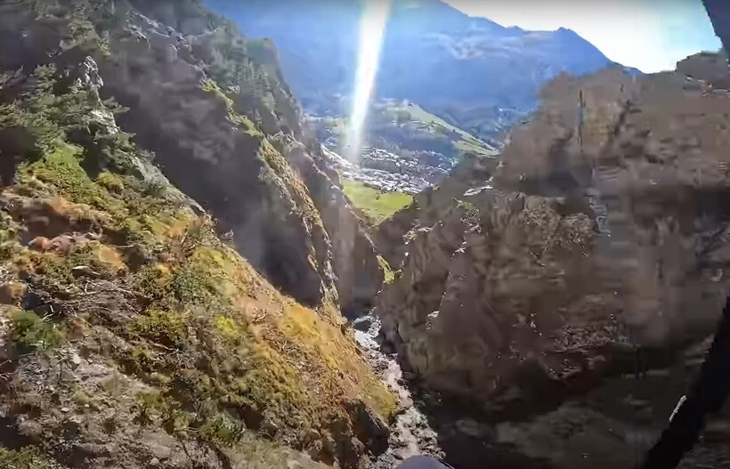 Когда смотришь на полет Александра, поистине захватывает дух и кружится голова. Секунда за секундой он кружит в опасной близости от гор и обрывов, то высоко отрываясь от земли, то приближаясь к ней так близко, что касается ногами. Ветер кидает парашют из стороны в сторону, крутит его вихрем, и задача опытного пилота так управлять небольшим парашютом, чтобы он не касался поверхности скал и не порвался.