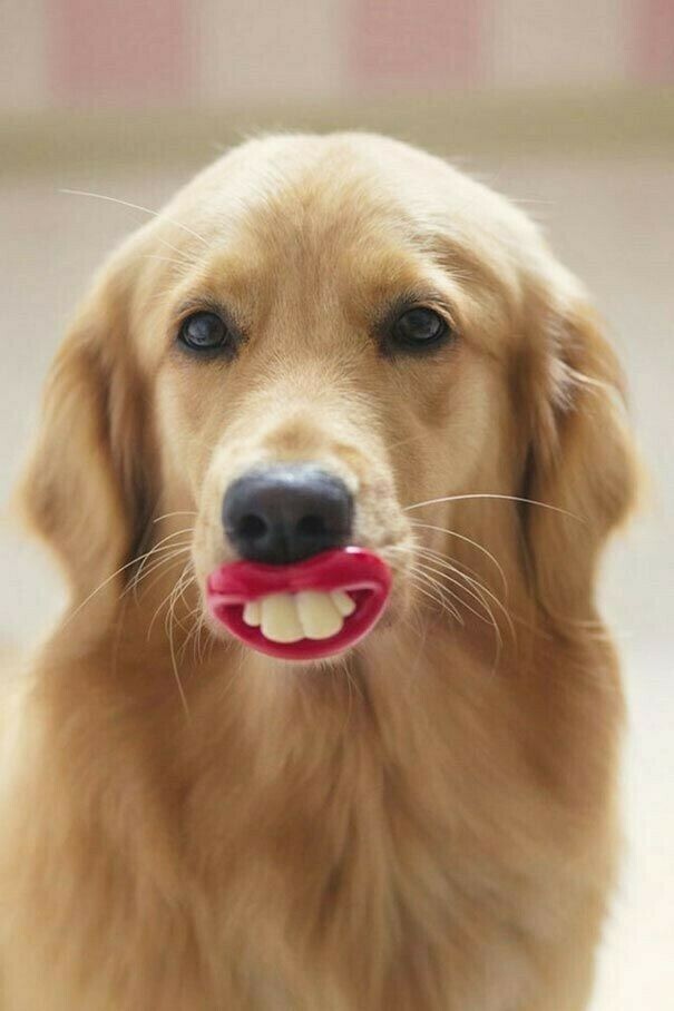 Этой собаки увеличенные губы подходят настолько хорошо, что кажется, будто это вовсе не игрушка.