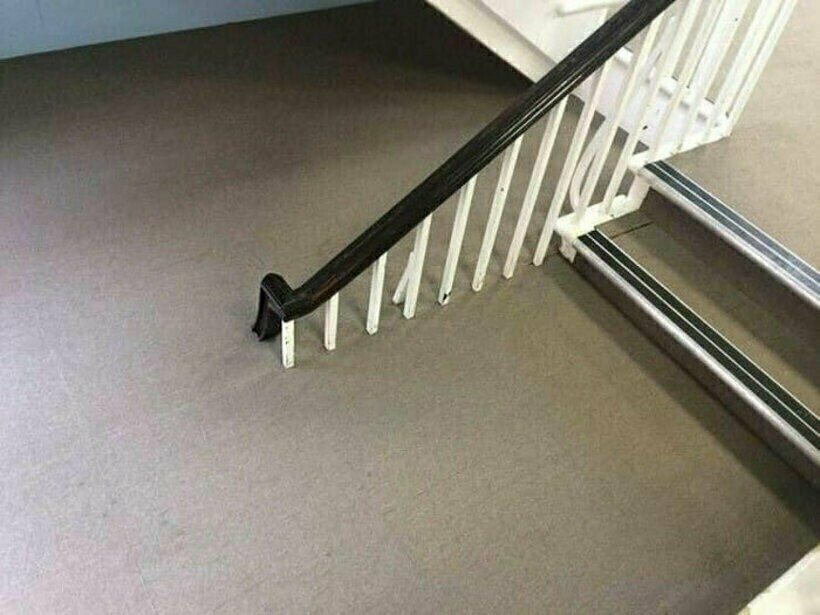 Или почему не сделали перила короче, когда стало очевидным, что лестница будет всего из двух ступеней.