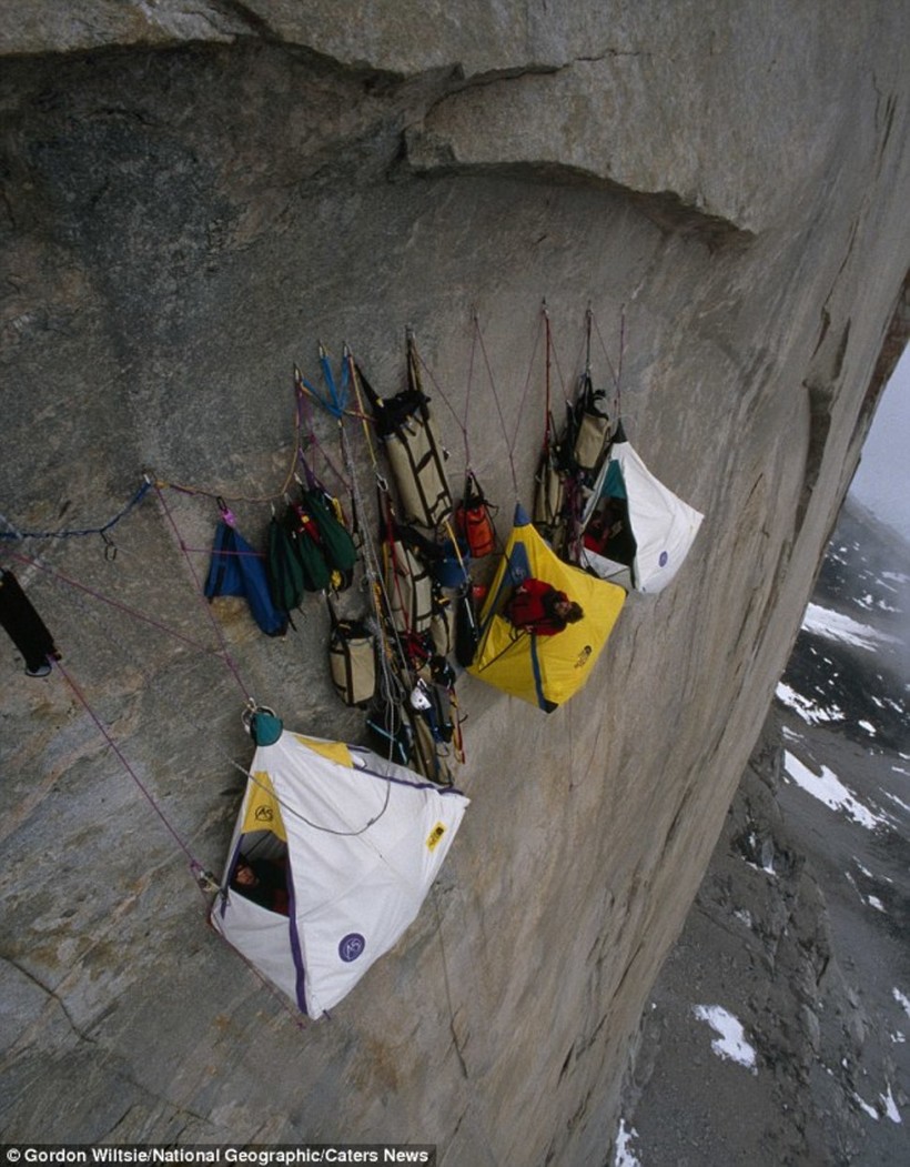 Или любая другая скала. Сегодня среди адреналиновых наркоманов назревает тенденция разбивать лагерь на высоте сотен метров над землёй. С одной стороны, спать на воздухе очень полезно. С другой - если вы забудете, что разбили лагерь не на земле, пробуждение может быть очень неожиданным.