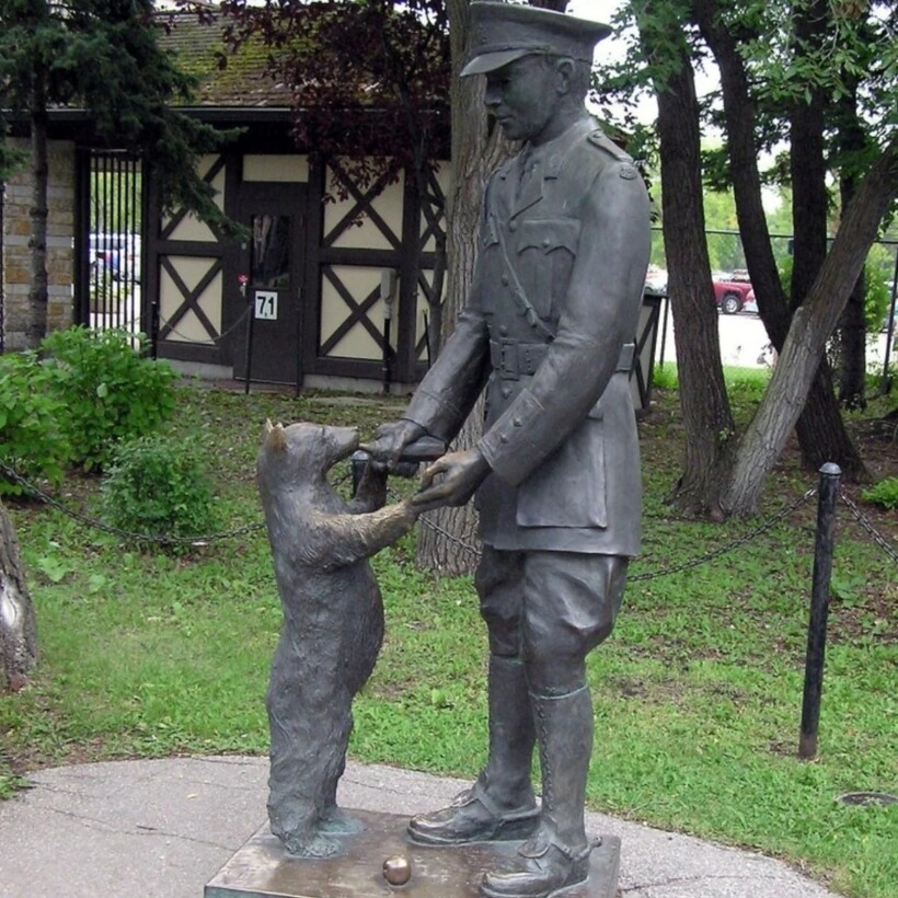 Канадский офицер Гарри Колборн в далеком 1914 году купил медвежонка у охотника и назвал ее Виннипегом в честь родного города, или просто Винни. Медведица жила вместе с ним в британском корпусе, где Гарри служил ветеринаром, и стала любимицей всех солдат.