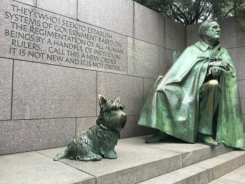 Шотландский терьер Франклина Рузвельта Фала был настолько популярен, что у него был личный секретарь, который отвечал на письма собачьих поклонников. Когда же делали мемориал Рузвельта в Вашингтоне, решили добавить и терьера. Стоит ли говорить, что с собакой фотографируются в разы чаще, чем с ее хозяином?