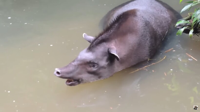 Тапиры настолько необычные на вид, что у жителей Латинской Америки ходит поверье: всевышний создал тапиров из оставшихся частей других животных. Он использовал тело и ноги свиньи, но дал тапирам небольшой хобот, как у маленького слоника из детской книжки Киплинга. Это травоядные существа, которые обожают барахтаться в воде. Интересно, что у тапиров крайне плохое зрение, и они полагаются на свое обоняние, постоянно принюхиваясь к окружающей среде.