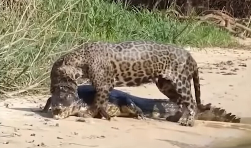 Заметив в воде большую пятнистую кошку и не меньшего по размеру крокодила, невольно думаешь, что судьба ягуара предрешена. На самом деле все обстоит иначе: ягуары в реке чувствуют себя так же комфортно, как на суше, и могут нырять на глубину до трех метров, чтобы поймать самую вкусную добычу, крокодила. Изворотливые и упругие кошки задействуют все свои силы, чтобы выудить кожаного неприятеля из воды и расправиться с ним на берегу. Поэтому при встрече ягуара и крокодила возникает другой вопрос: а сможет ли спастись рептилия от своенравного кота?