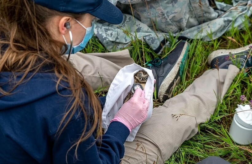 В канадской провинции Манитоба кроличьи сычи находятся на грани исчезновения, хотя в прошлом они были широко распространены. Новая программа по сохранению вида заключается в создании новых мест для размножения сов, соединении пар с целью выведения потомства и контроле за здоровьем особей, особенно молодых, которые могут продолжить род. Канадский фотограф Уолтер Потребка стал свидетелем того, как ветеринар обследует сову.
