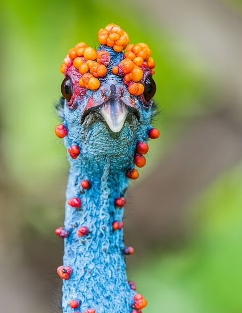 Эта «портретная фотография» пока лидирует в одноименной номинации. Ее сделал австриец Леандер Хиль, который рассказал, что этот вид индейки родом из Центральной Америки и водится только на полуострове Юкатан в Мексике, в Гватемале и Северном Белизе. В последнем автор и сделал свой снимок. Кстати, оранжевые и красные бородавки на голубых голове и шее украшают только самцов и являются половым диморфизмом. Самки лишены этой изюминки.