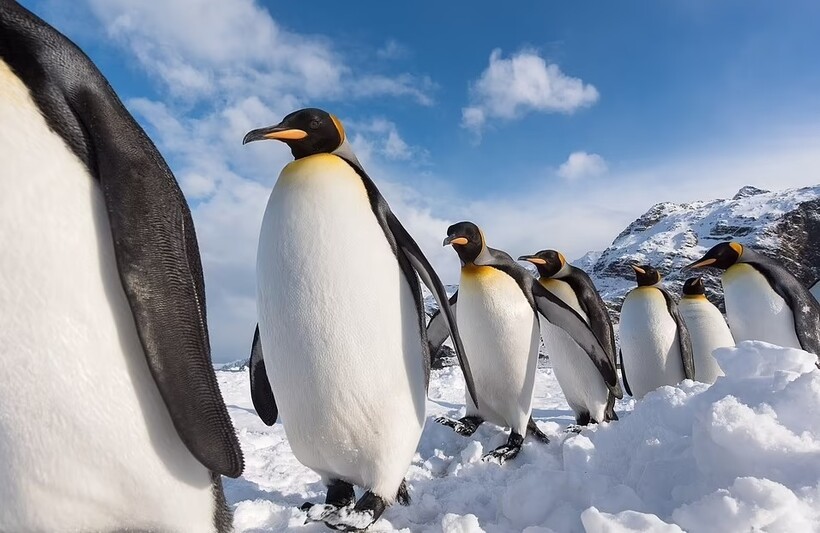 Этот динамичный снимок, сделанный в бухте Голд-Харбор на острове Южная Джорджия, принадлежит африканцу Бену Кранке. Как пишет Бен, он долго наблюдал за королевскими пингвинами и заметил, что к воде они ходят проторенными дорожками, выстраиваясь гуськом. Чтобы сделать такой кадр, автор поставил камеру рядом с пингвиньей тропой и замаскировал ее снегом, а когда птицы подошли, то воспользовался триггером (удаленной кнопкой), чтобы сделать снимок.
