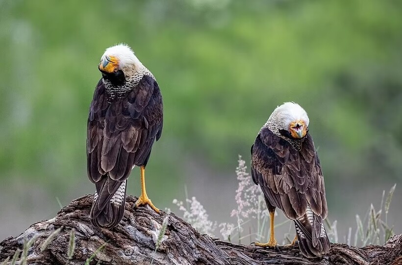 Эти хищные птицы прилетают на семейное фоторанчо Лагуна Сека в Техасе, где прикармливают птиц и позволяют фотографам их снимать. Американец Марти Филлипс просидел там не один час, наблюдая за парой каракар во время брачного периода. Как пишет автор кадра, птицы в основном сидели на месте и вертели головами на 360°. Такой занятный снимок и удалось снять Марти.