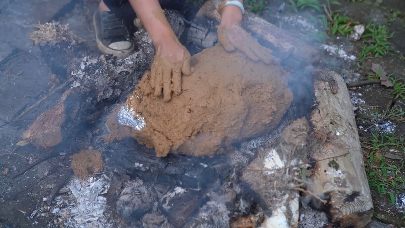 Автор сюжета, китайская девушка, показывает, как готовить сразу несколько традиционных блюд, используя вместо посуды листья лотоса и стебли бамбука. Все начинается со сбора будущей тары и ее споласкивания в воде. Девушка будет готовить запеченную курицу, ребрышки в панировке на пару, рис с курицей и грибами и рис с беконом в бамбуке. Замариновав курицу целиком, китаянка оборачивает ее в листья лотоса, затем в фольгу и после обкладывает сырой землей, имитируя плотный кокон. В такой виде она кладет курицу на прогоревшие угли и накрывает горящими дровами. В течение двух часов курица будет запекаться, а плотный слой земли, фольги и листьев не даст ей сгореть.