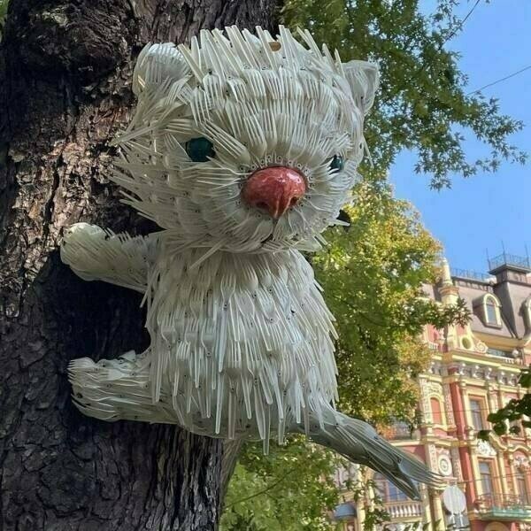 Зачем выбрасывать одноразовые вилки из пластика, если из них можно сделать необычную фигурку кота?