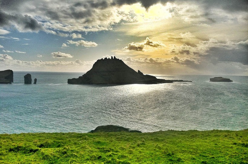 Тиндхёльмур. Один из островов Фарерского архипелага. Вид на скалы острова изображен на 200-кроновой банкноте Фарерских островов.