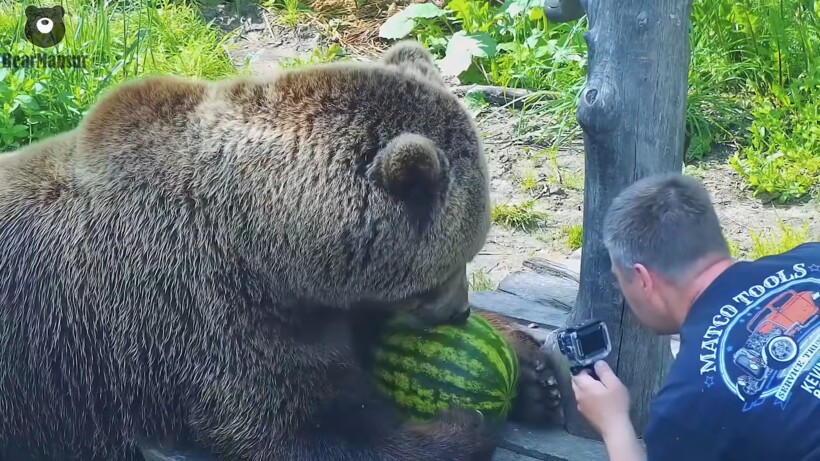 В видео ниже вы можете понаблюдать за тем, с чего начинается лето для медведя. В летнюю жару мишкам приходится несладко, потому что их густой мех не дает телу охладиться. Поэтому летом медведи много времени проводят в водоемах. Помимо купания в холодной воде, есть и другие способы охладиться. Что может быть прекраснее, чем полакомиться прохладным арбузом в жаркую летнюю пору?