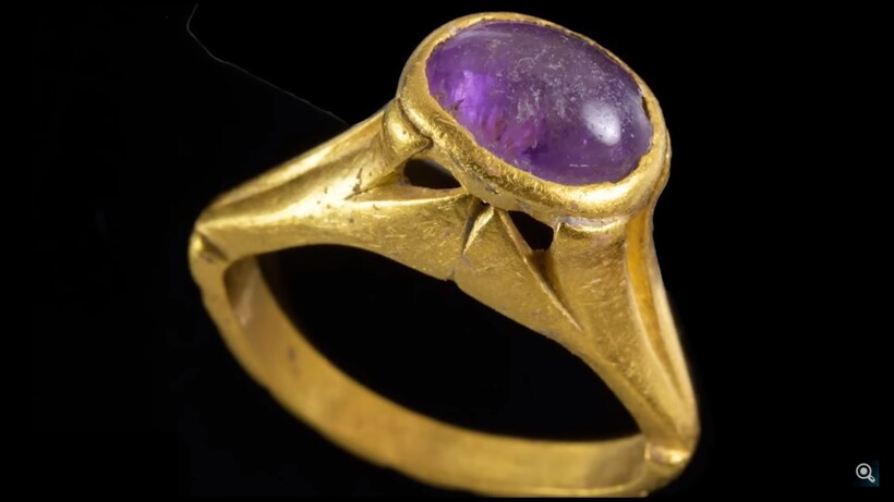 На территории Израиля было найдено золотое кольцо с камнем. Оно попало в руки археологов при раскопках винодельни. Возраст артефакта датируется 7 веком (или даже старше). Эффектное украшение с аметистом, вероятнее всего, принадлежало состоятельному гражданину. В те времена люди верили, что этот камень помогает при похмелье.