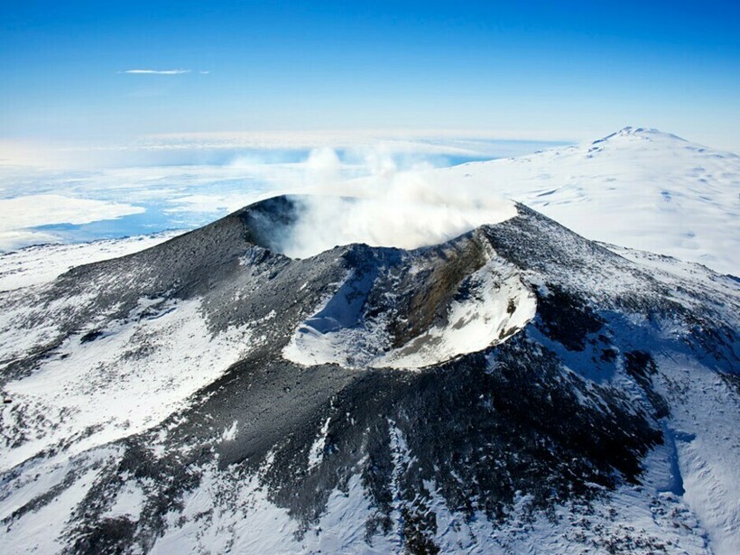 В то время как внутри горы Эребус очень жарко, снаружи сохраняются весьма низкие температуры, при которых можно быстро замерзнуть. На склоне заснеженного вулкана расположены ледяные пещеры, вырезанные газами, которые постоянно исходят из недр вулкана. Из-за газа в ледяных пещерах поддерживается постоянная нулевая температура. Эти газы, выходя наружу через ледяные пещеры, образуют огромные ледяные трубы, или фумаролы. Время от времени можно наблюдать, как из них вырываются смертоносные вулканические пары. Кстати, о том, как в кратере вулкана образовалось соленое озеро, мы рассказывали в другой статье.