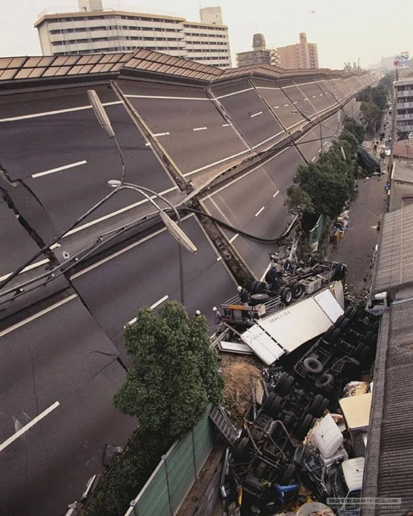 Так выглядело шоссе в городе Кобе после землетрясения «Хансин», обрушившегося на Японию в 1995 году.
