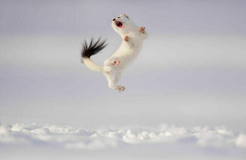Фотография Хосе Грандио, сделанная во французских Альпах, показывает одного из самых частых зверьков, что можно встретить в тех местах. Любопытно, что между осенью и зимой горностаи некоторое время отсиживаются в норах, пока их коричневая летняя шкурка окончательно не сменит цвет на белый.