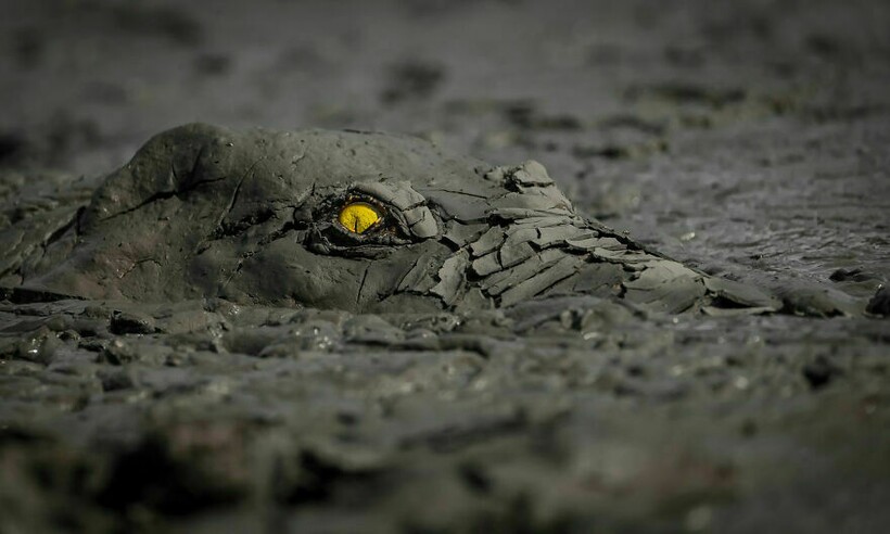 Хотя национальный парк Мана-Пулс в Зимбабве страдает от засухи, животные могут прятаться в грязевых ямах, которые еще хранят влажность. Такого очаровательного крокодила запечатлел американец Йенс Каллман во время тура по Африке.
