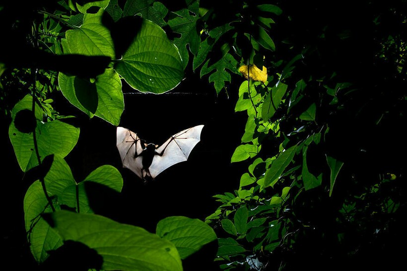 Сделать эффектный снимок летучей мыши в полете довольно сложно, но индиец Ситарам Рауль провел три недели, наблюдая за фруктовыми летучими мышами, прежде чем полностью изучил их привычки и смог сделать необычную фотографию.