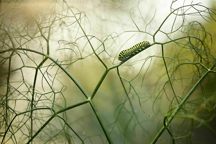 Рубен Перес Ново из испанского города Арес смог сфотографировать простую гусеницу, которая вскоре превратится в махаона, а пока она ползает по укропу и временами жует его на обед. Эта будущая метаморфоза принесла Рубену лидерство среди фотографов.