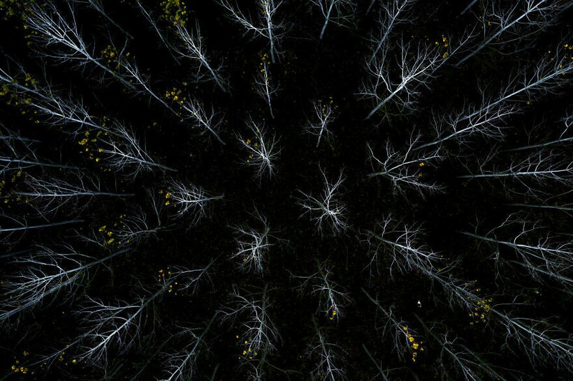 Фотография Сильвано Пайолы из Сербии показывает почти опавший осенний лес из тополей.