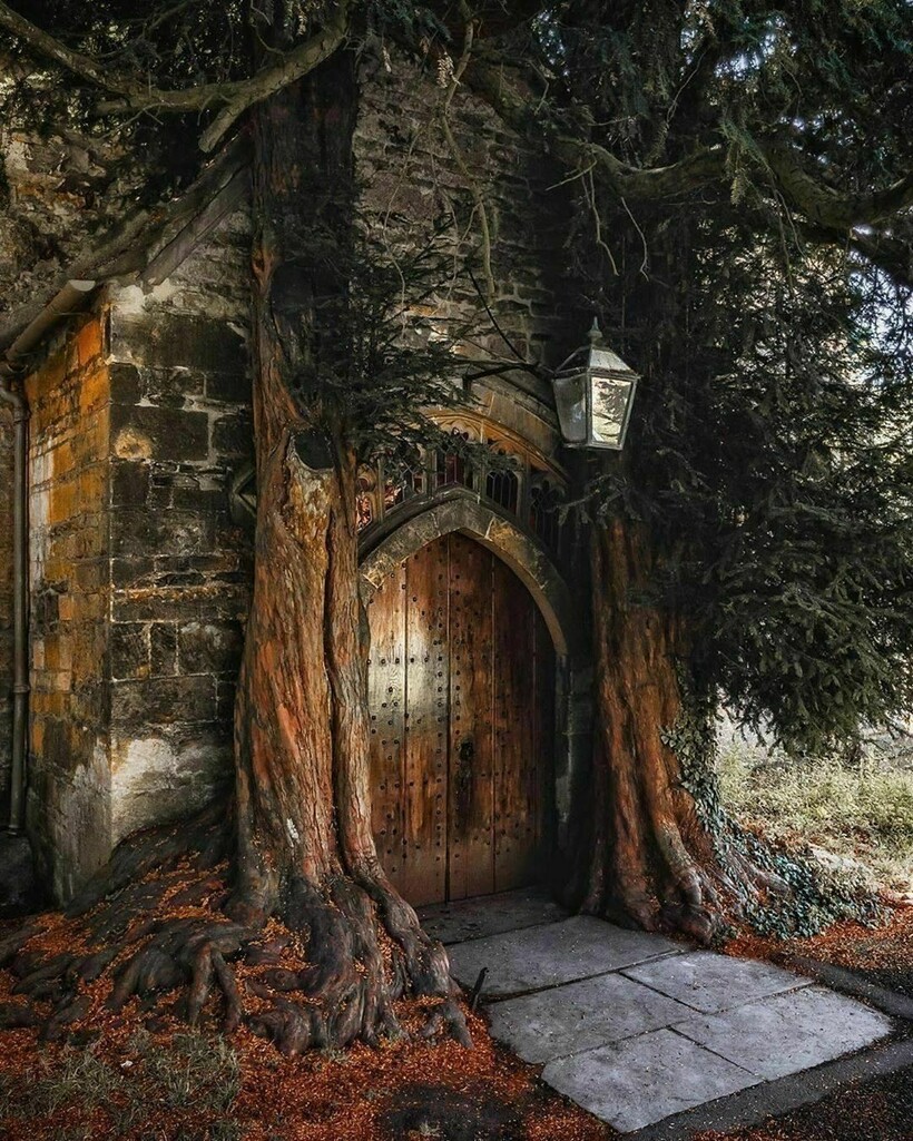 На самом деле это замок Тинтагель в Корнуолле, Англия. Он настолько старый, что связан с легендой о короле Артуре, а дверь на снимке ведет к так называемой пещере Мерлина.