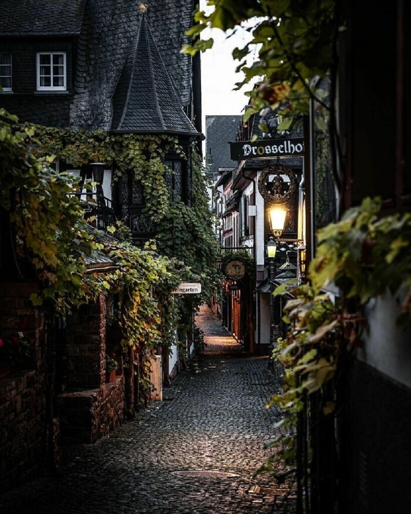 Пустынный переулок, напоминающий произведения братьев Гримм