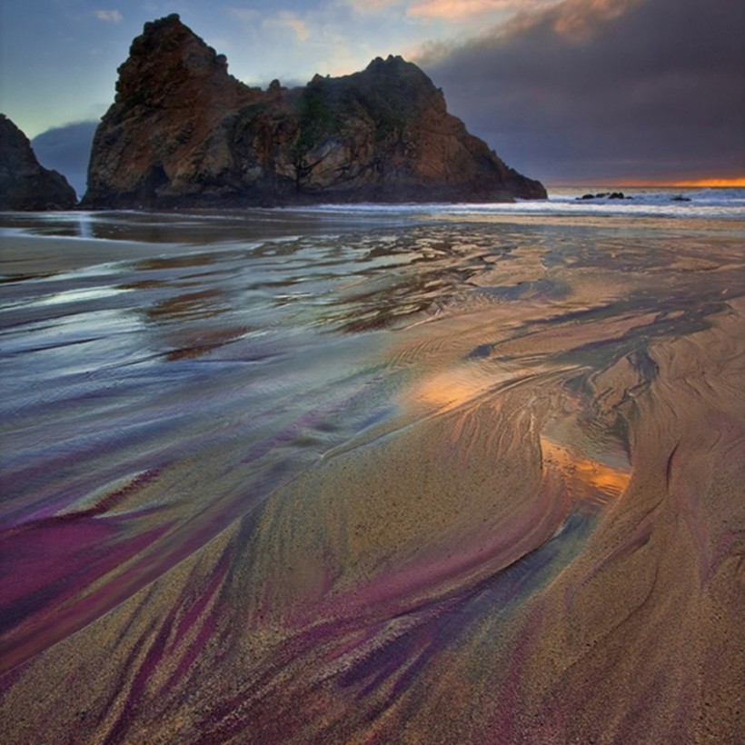 Даже немного жаль, что не все пляжи настолько красочны. Экзотические фиолетовые пески на пляже Пфайфер (Калифорния) черпают свой необычный цвет из гранатовых гранул марганца, места отложений которого распространены по всему региону.
