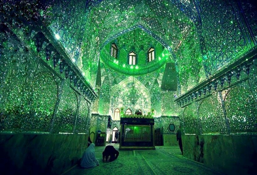 Этот мавзолей был создан архитекторами в Иране, и вся его непревзойденная красота прячется внутри. Дело в том, что во внутренней отделке использовали множество маленьких кусочков зеркал, за что место также называют зеркальной мечетью.