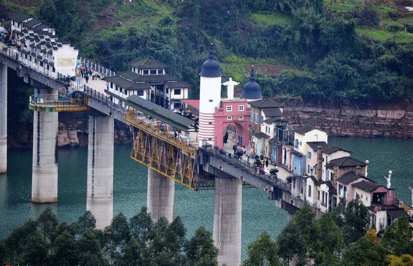 С 2018 года в Китае можно полюбоваться вот таким мостом. На 400-метровом строении, раскинувшемся через реку на внушительных опорах, находятся различные здания.
