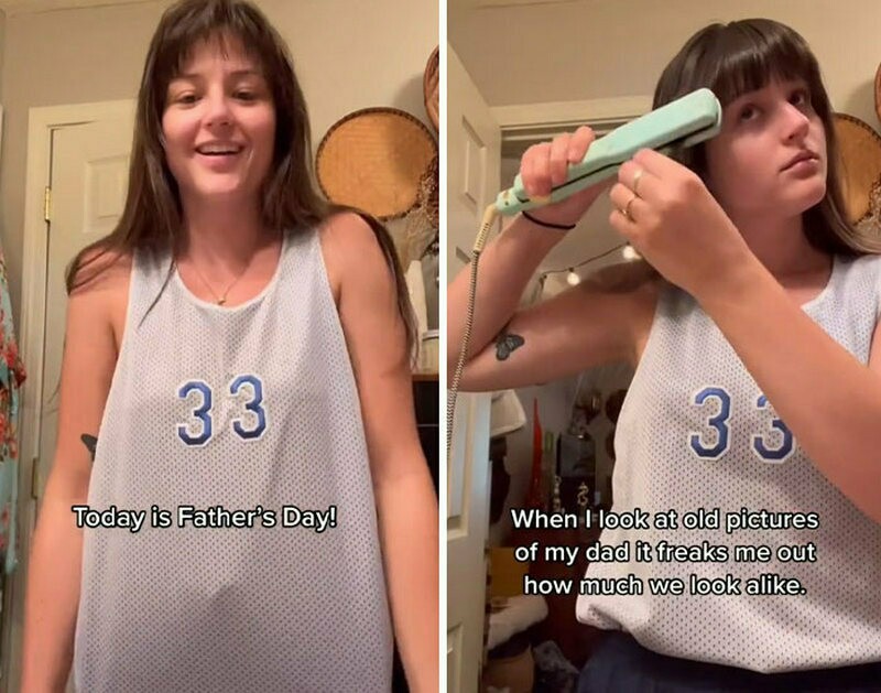 Для родителя не может быть приятней подарка, чем осознание, что его дети похожи на него, и особенно если они ценят это сходство. Например, мы показывали потрясающий фотопроект, в котором внуки повторили снимки своих дедушек и бабушек: и оказалось, они удивительно похожи. Американка Лэкин Боумен (Lakyn Bowman) тоже решила сделать нечто подобное: она взяла несколько фотографий из детства отца и воссоздала их. Причем буквально: она нашла такую же одежду, повторила позы и даже прическу.