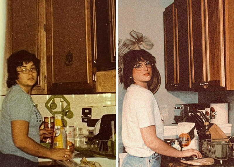 Кстати, девушка уже делала подобный проект: она решила повторить старые снимки бабушки к ее дню рождения. Видеоролик с фотографиями набрал миллионы просмотров в соцсетях.