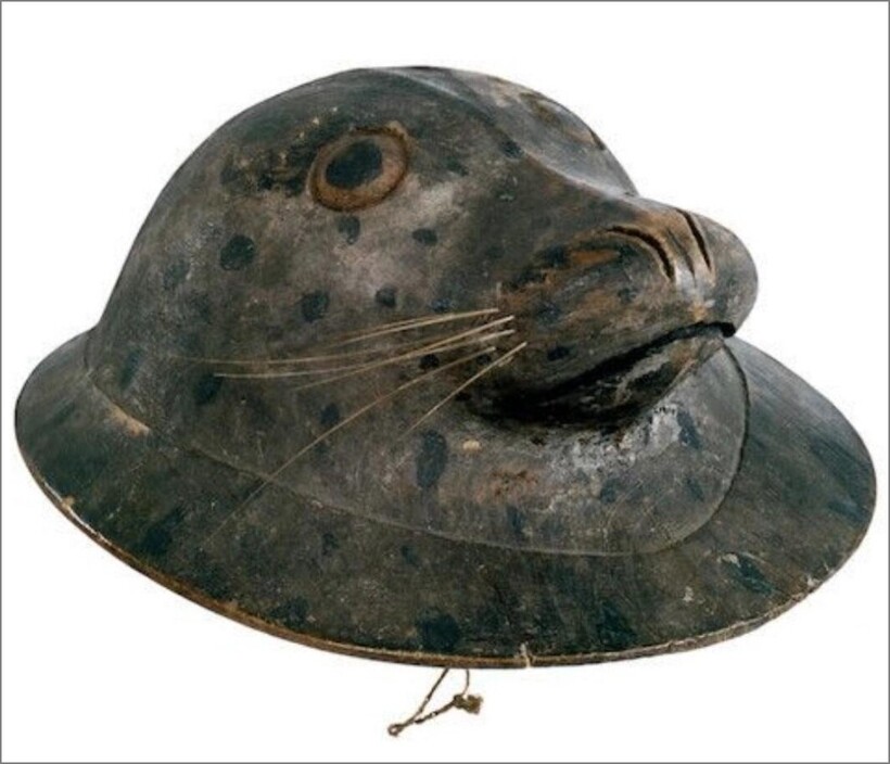 Такие головные уборы носили люди, охотившиеся на тюленей на острове Кодьяк.