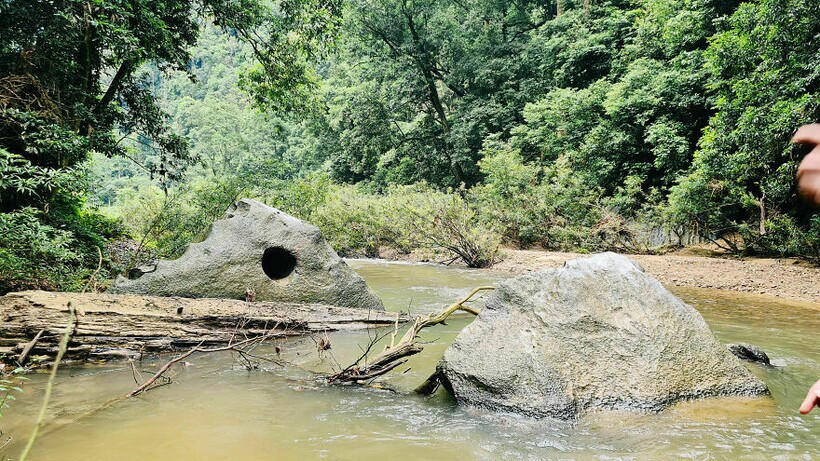 Так туристы прозвали камень с круглым отверстием. Каждый, проходя мимо, кидает туда монетку, якобы платя за проход через ручей.