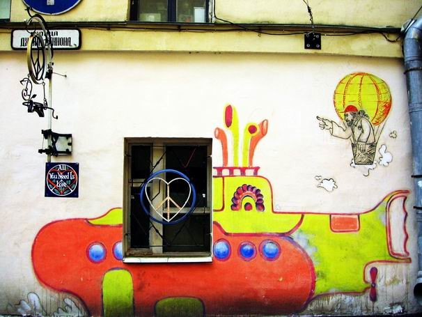 Поклонники The Beatles и настенного творчества наверняка полюбят это неформальное место всей душой. Здесь висит соответствующая табличка с названием улицы, над аркой — лица музыкантов, а на стене — гигантская желтая подводная лодка. Также нашлось место фразе «Аll you need is love» и признаниям в любви, разумеется. Такие дворы и есть отражение настоящего города.