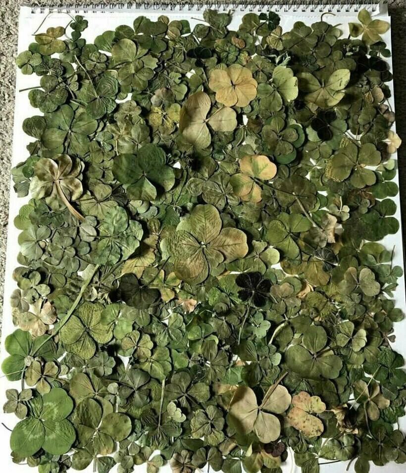 Собрание из более чем двухсот засушенных экземпляров четырехлистного клевера