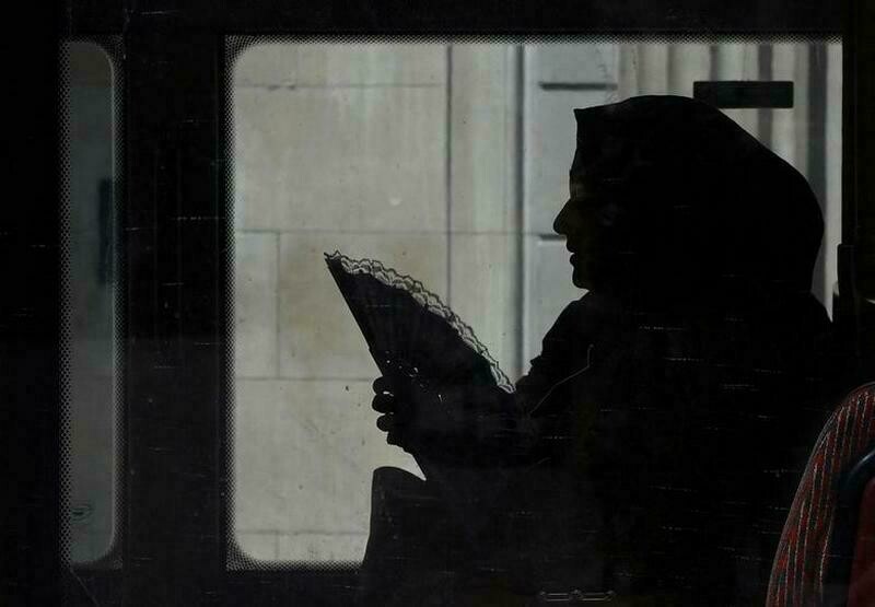 Мужчина вооружился ручным вентилятором, чтобы как-то охладиться