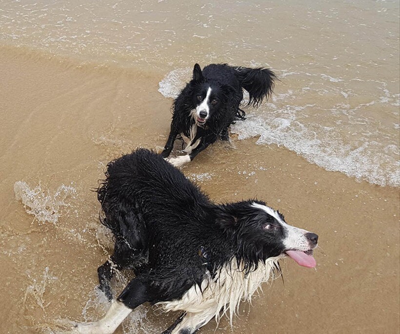 Хозяйка решила отвезти собак на пляж, чтобы они вдоволь побегали, порезвились и поиграли друг с другом