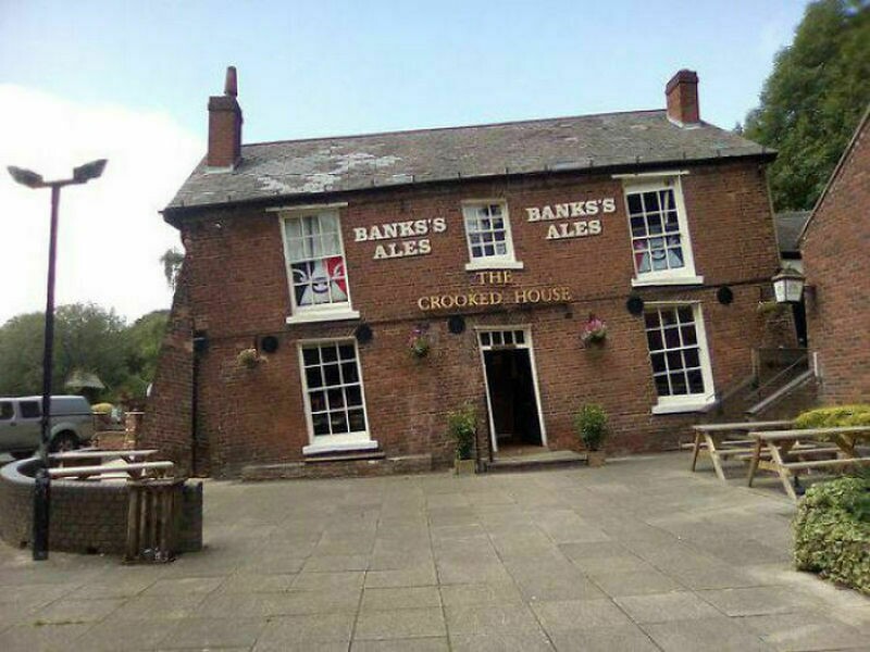Британский паб, покосившийся на одну сторону за те столетия, который он стоит