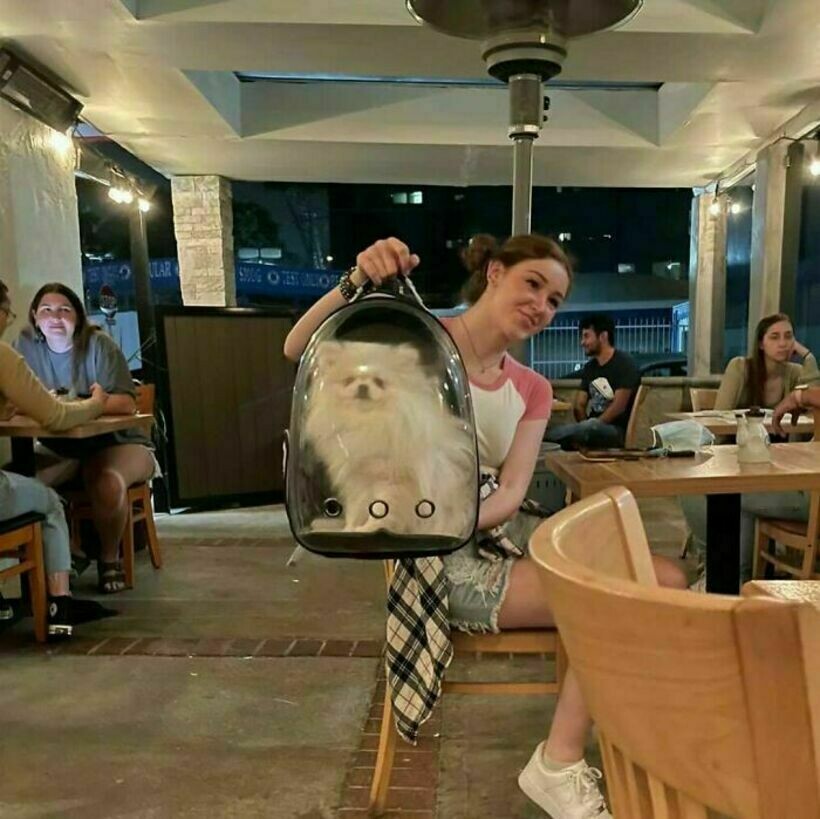 Обычно в таких рюкзаках носят котиков, но некоторым собакам в них тоже комфортно
