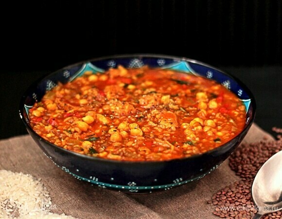 Говорят, что этот желтый суп придумали древние представители берберов. За его основу берут мясо, в бульоне с которым варятся самые разнообразные овощи. Когда блюдо уже практически готово, в него добавляют большое количество куркумы, что и придает жидкости характерный окрас.