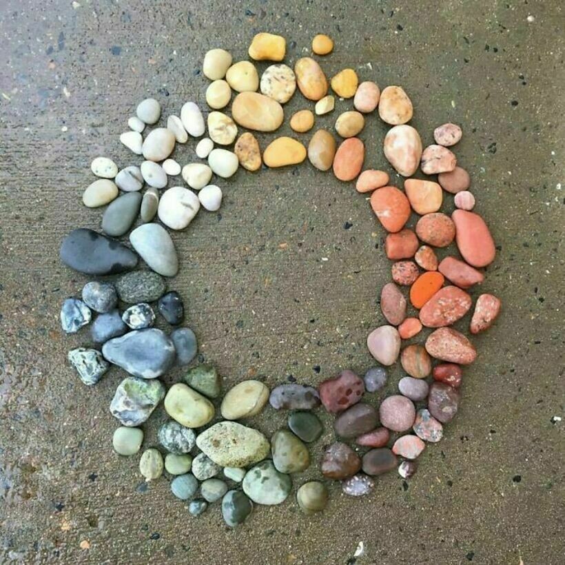 На пляже можно собирать разноцветные камни и затем делать из них различные композиции