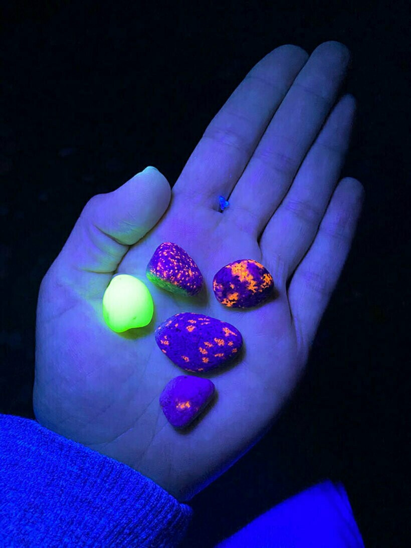Найденные на берегу озера Мичиган камни, светящиеся в ультрафиолетовом свете