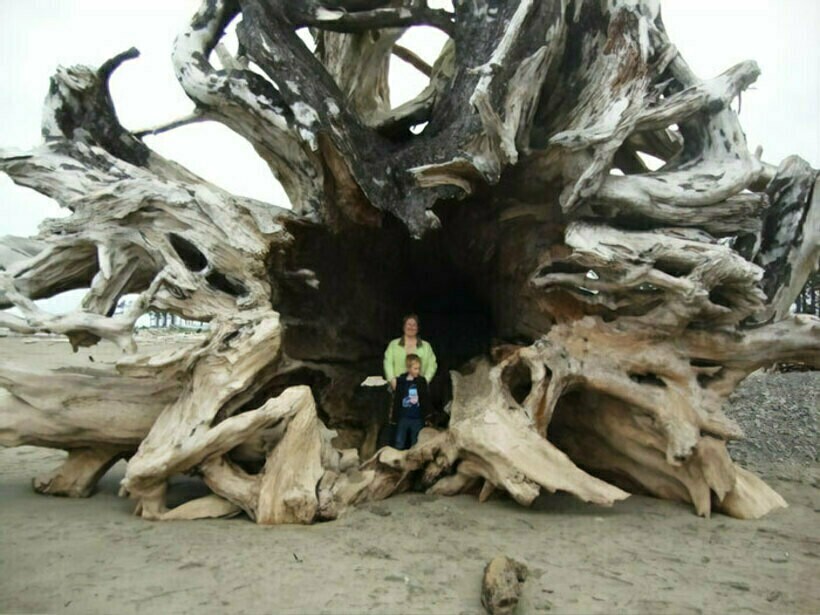 Огромный ствол дерева, выброшенный на берег, Ла Пуш, штат Вашингтон