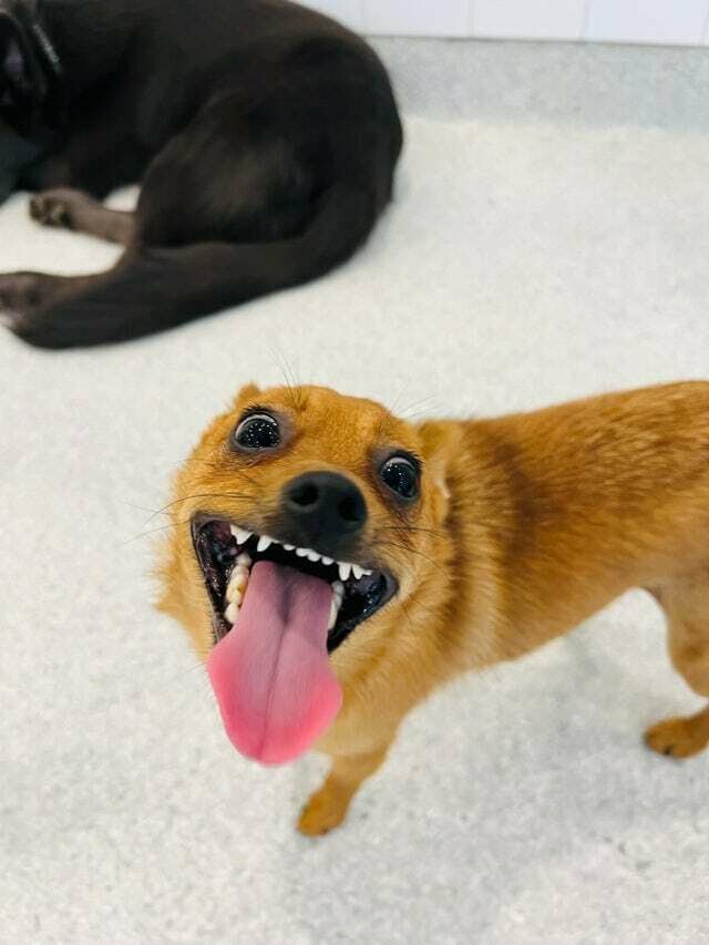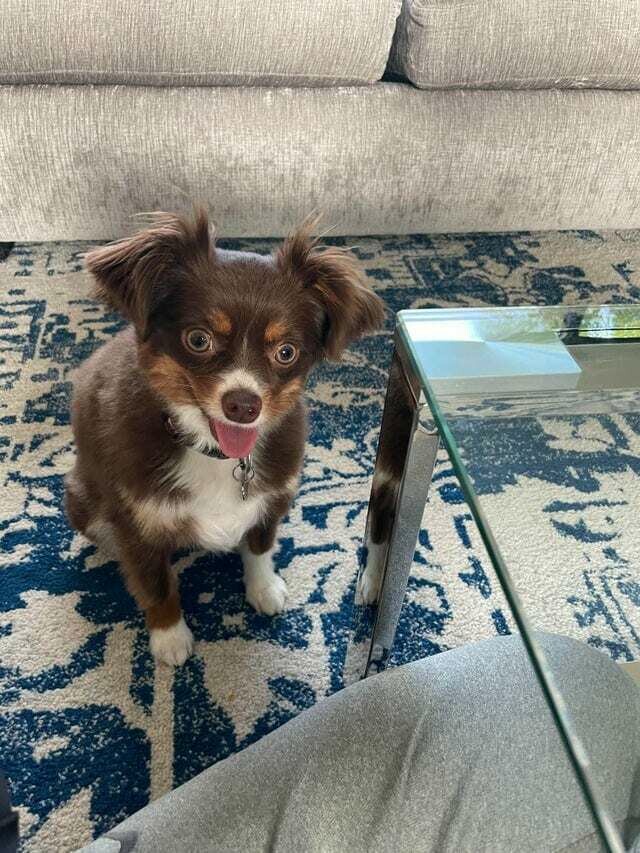 Пес выглядит так, как будто хозяин рассказал ему несмешной анекдот и ждет его реакции, глядя в глаза.